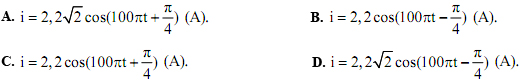Câu 50. Đặt điện áp xoay chiều u = U√2cosωt (V) vào hai đầu một điện trở thuần R = 110Ω thì cường độ dòng điện qua điện trở có giá trị hiệu dụng bằng 2 A. Giá trị U bằng.