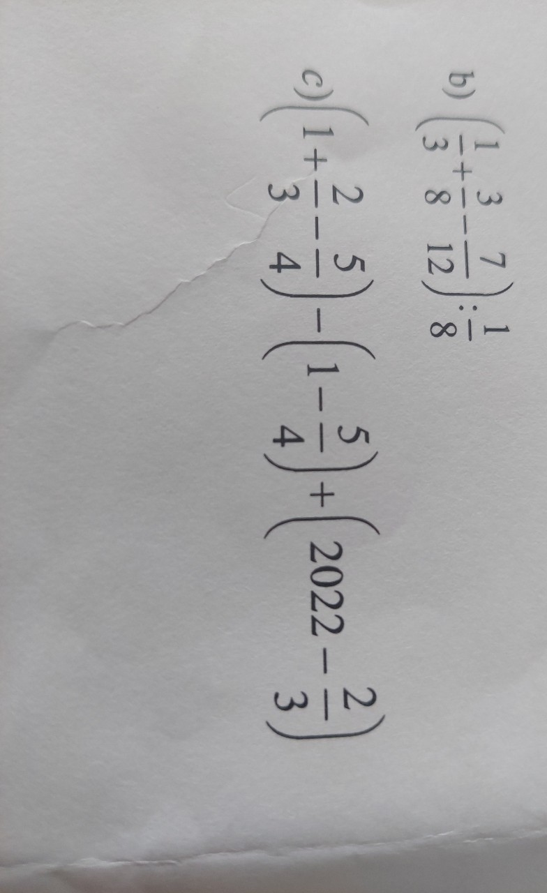 Tính: (1/3 + 3/8 - 7/12) : 1/8
