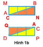 Ta có thể kiểm tra đếm lại: Các tam giác cắt bỏ AMB, BNC, CPD, DQA ghép từng đôi một với nhau có tổng diện tích = 6 ô vuông nhỏ (Hình 1b) → ABCD = 10