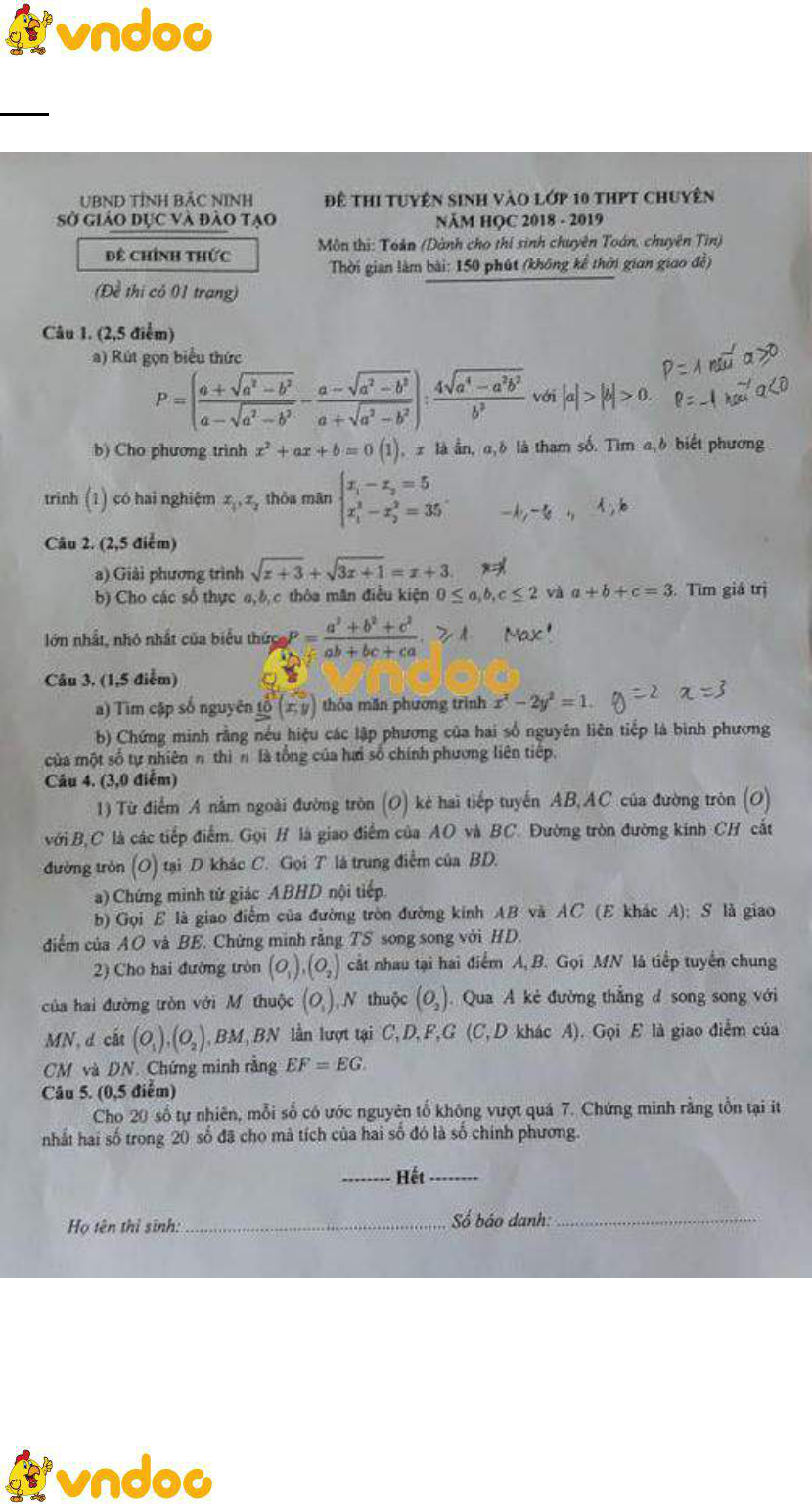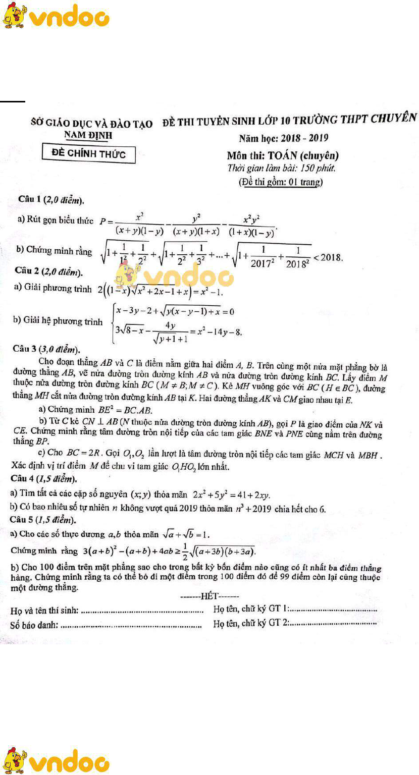 24 Đề thi vào lớp 10 THPT Chuyên môn Toán năm học 2018 - 2019