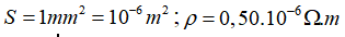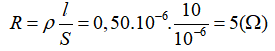 Câu 15. (1,5 điểm). Tính diện trở của sợi dây dẫn bằng constantan dài 10m có tiết diện 1mm2. Biết điện trở suất của constantan là 0,50.10-6 .