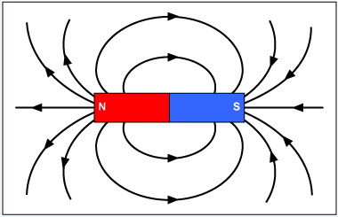 Bên ngoài thanh nam châm, các đường sức từ có chiều đi ra từ cực bắc, đi vào cực nam. |
