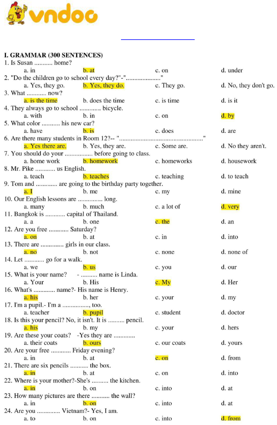 300 câu hỏi trắc nghiệm ngữ pháp tiếng Anh ôn thi viên chức