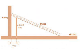 Câu 19: Tính chiều dài bé nhất của cái thang đơn vị m, để nó có thể tựa nào tường và mặt đất, ngang qua cột đỡ cao 4 m, song song và cách tường