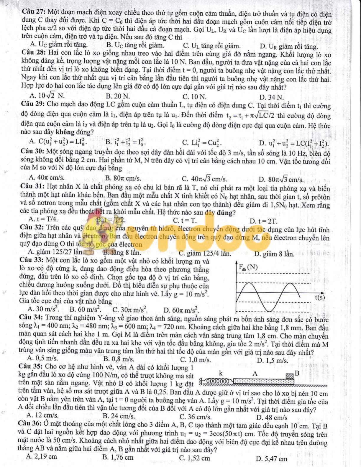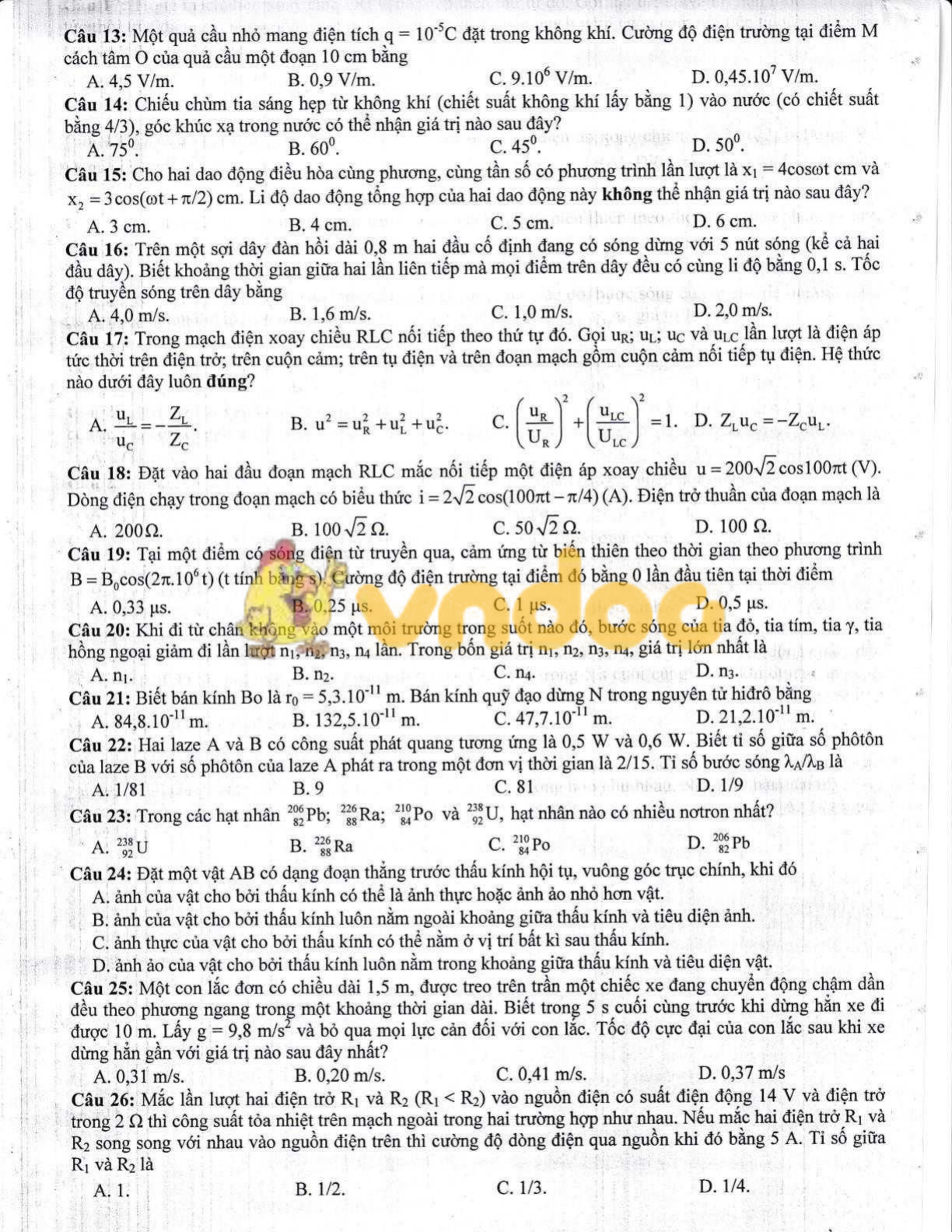 VnDoc xin giới thiệu tới bạn đọc Đề thi Trắc nghiệm Vật lý 12, 60 đề thi thử THPT Quốc gia môn Vật lý năm 2019 có đáp án. Nội dung tài liệu chắc chắn sẽ giúp các bạn chuẩn bị tốt cho kỳ thi THPT Quốc gia môn Vật lý một cách hiệu quả hơn. Mời các bạn học sinh tham khảo.