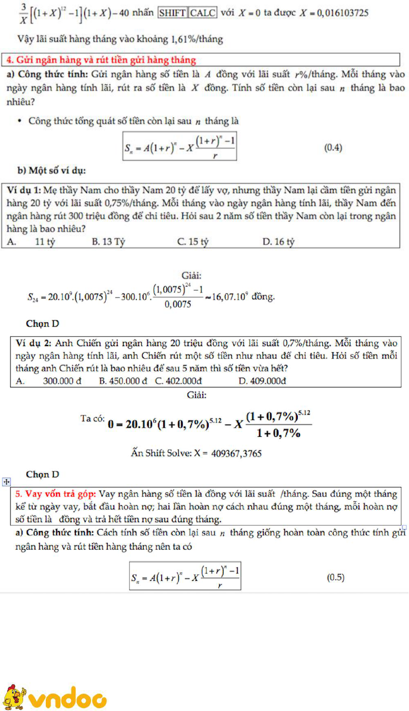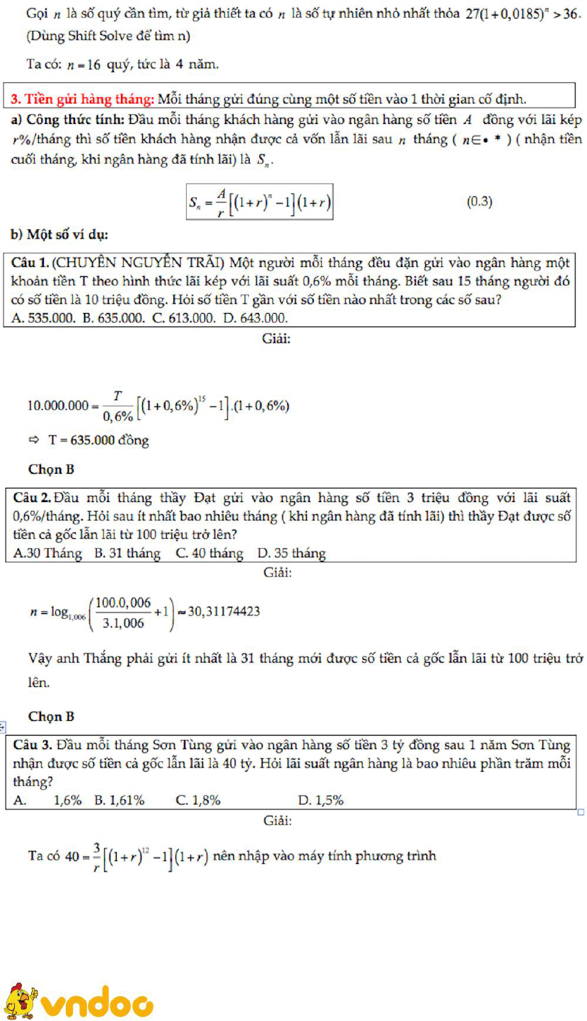 VnDoc xin giới thiệu tới bạn đọc 7 công thức chinh phục dạng toán lãi suất trong đề thi THPT quốc gia, nội dung tài liệu chắc chắn sẽ giúp các bạn học sinh học tốt hơn môn Toán. Mời thầy cô và các bạn học sinh cùng tham khảo.