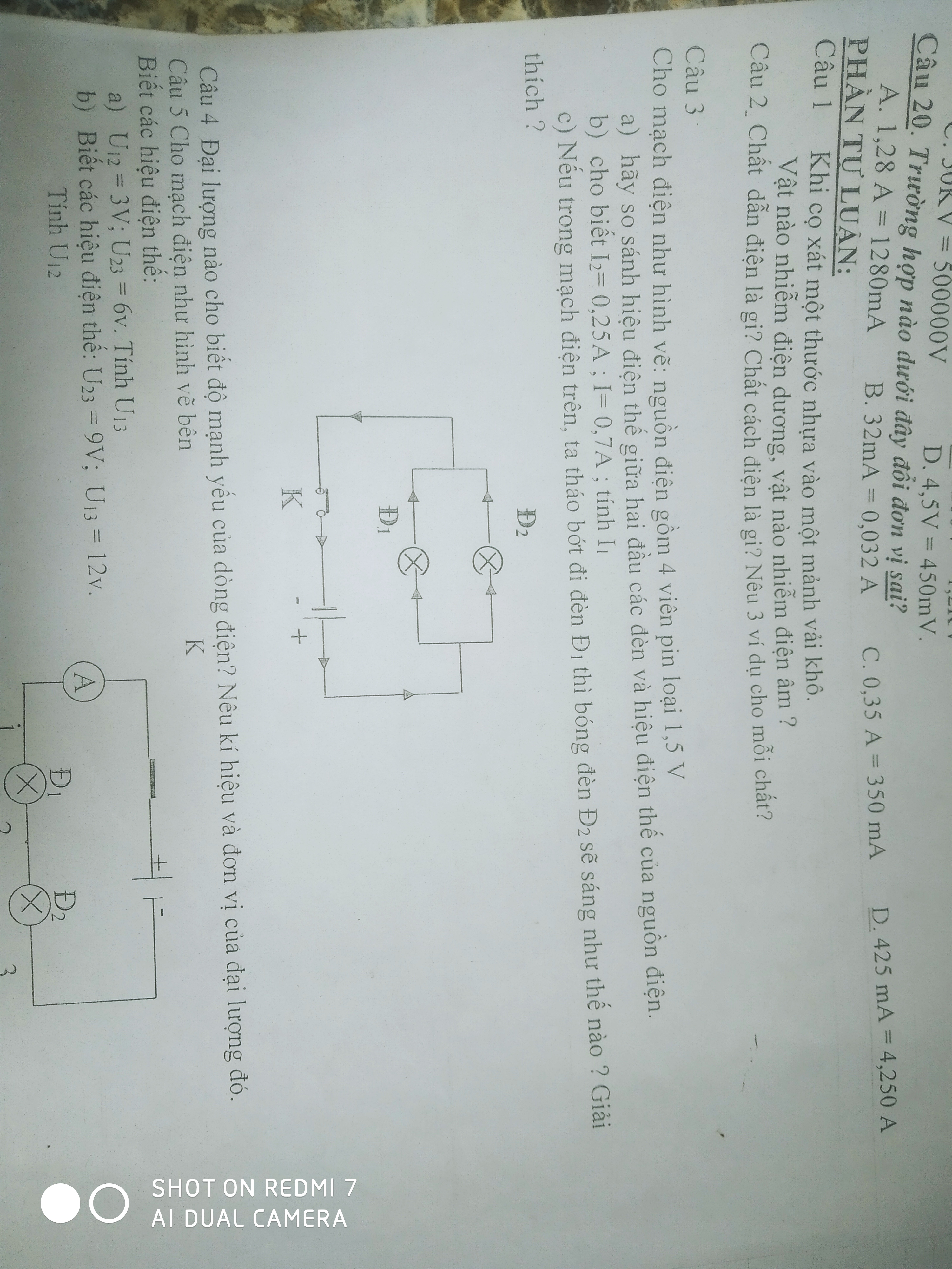 a) hãy so sánh hiệu điện thế giữa hai đầu các đèn và hiệu điện thế của nguồn điện.