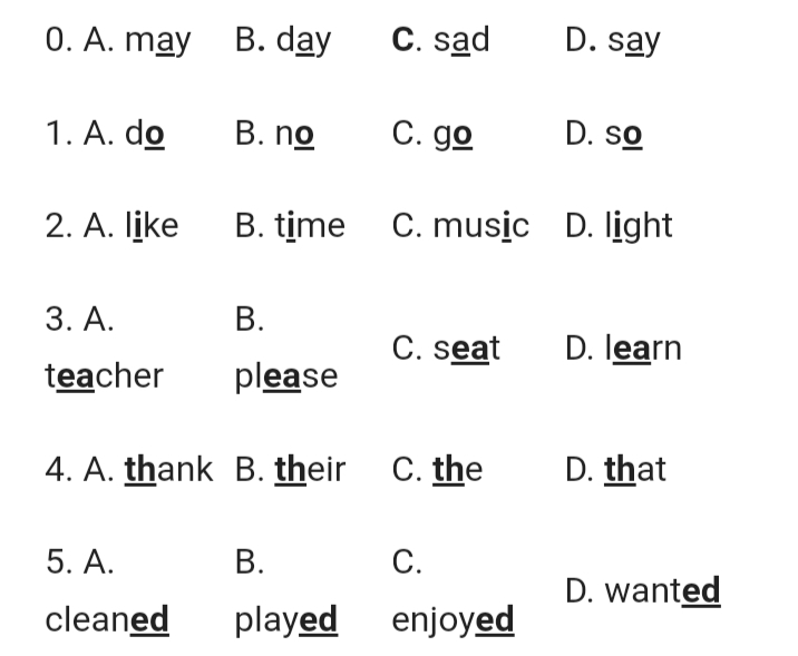 Hãy chọn phương án A,B,C,D ccó cách phát âm khác với các từ còn lại