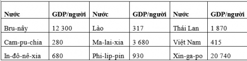 Bảng 17.1. Tổng sản phẩm trong nước (GDP) bình quân đầu người của một số nước Đông Nam Á năm 2001