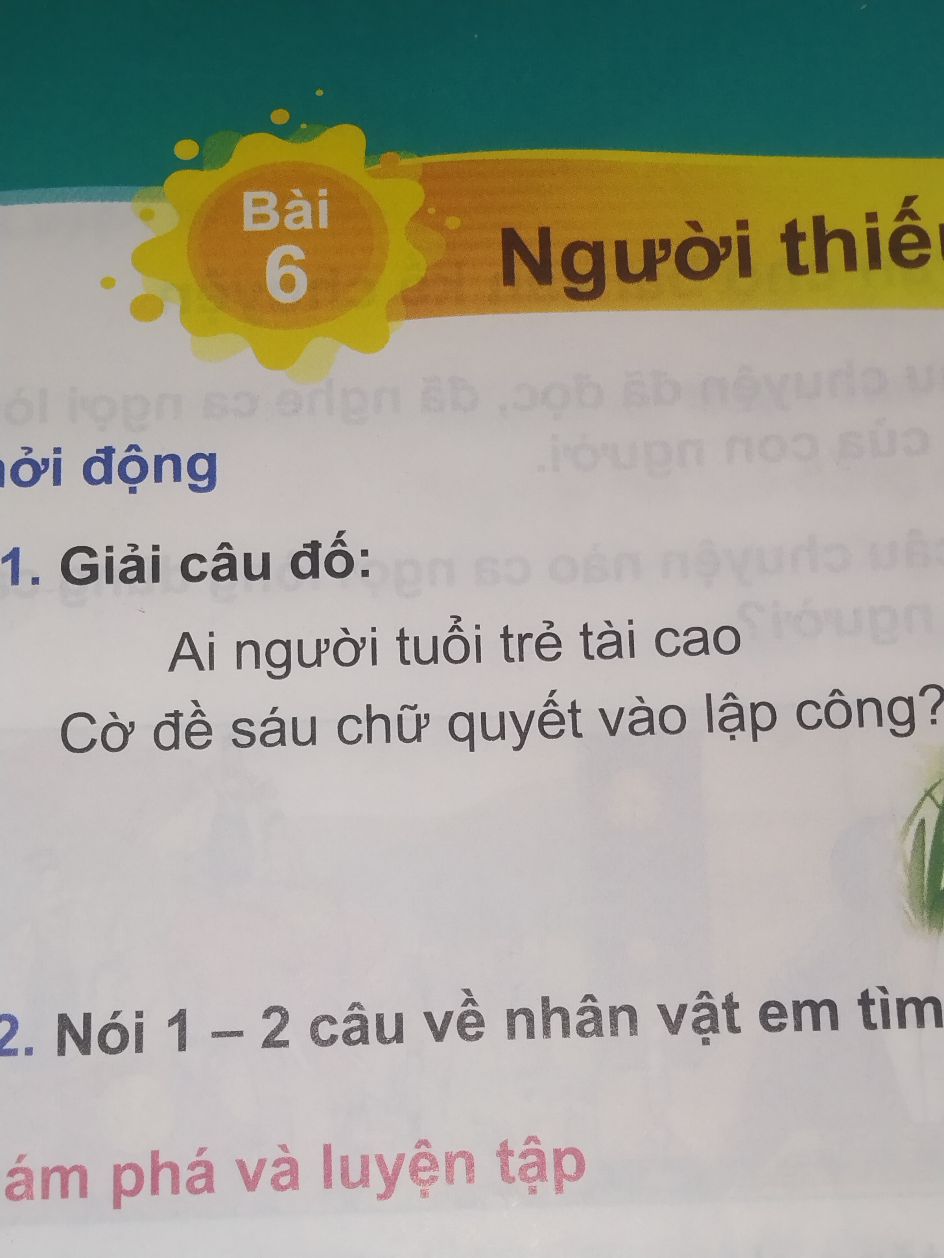 Ai người tuổi trẻ tài caoCờ đề sáu chữ quyết vào lập công