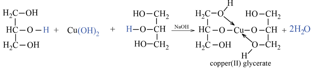 Các polyalcohol có hai nhóm hydroxy liền kề như ethylene glycol, glycerol,... có phản ứng hòa tan copper(II) hydroxide tạo thành phức chất màu xanh lam, tan trong nước.