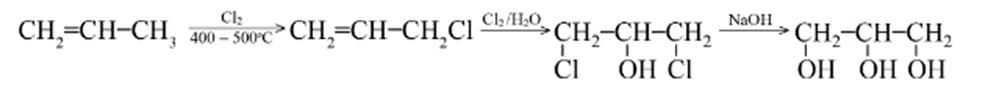 Ngoài ra, glycerol còn được tổng hợp từ propene theo sơ đồ sau: