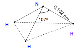 Phân tử NH3 có cấu trúc chóp tam giác, với nguyên tử nitrogen ở đỉnh, đáy là một tam giác mà đỉnh là 3 nguyên tử hydrogen.