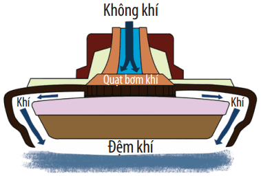 Máy bơm nén không khí vào khoảng không gian giữa đáy tàu và mặt nước tạo nên một lớp không khí có áp suất cao hơn áp suất khí quyển bên trên thân tàu. Sự chênh lệch áp suất này sẽ nâng tàu lên cách mặt nước hoặc mặt đất tạo thành lớp đệm khí. Vì vậy, trong quá trình di chuyển, tàu không tiếp xúc với mặt nước hoặc mặt đất, do đó làm giảm đáng kể lực cản hay lực ma sát.