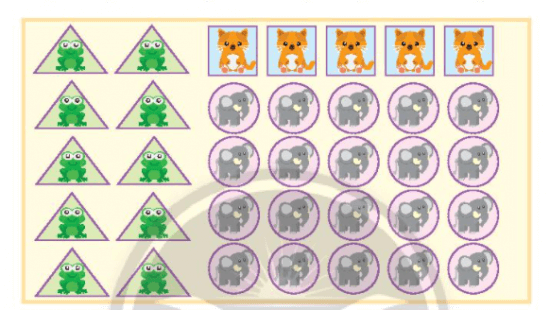 c) Cô giáo thưởng đều các miếng dán cho 5 bạn. Hỏi mỗi bạn nhận được bao nhiêu miếng dán mỗi loại?