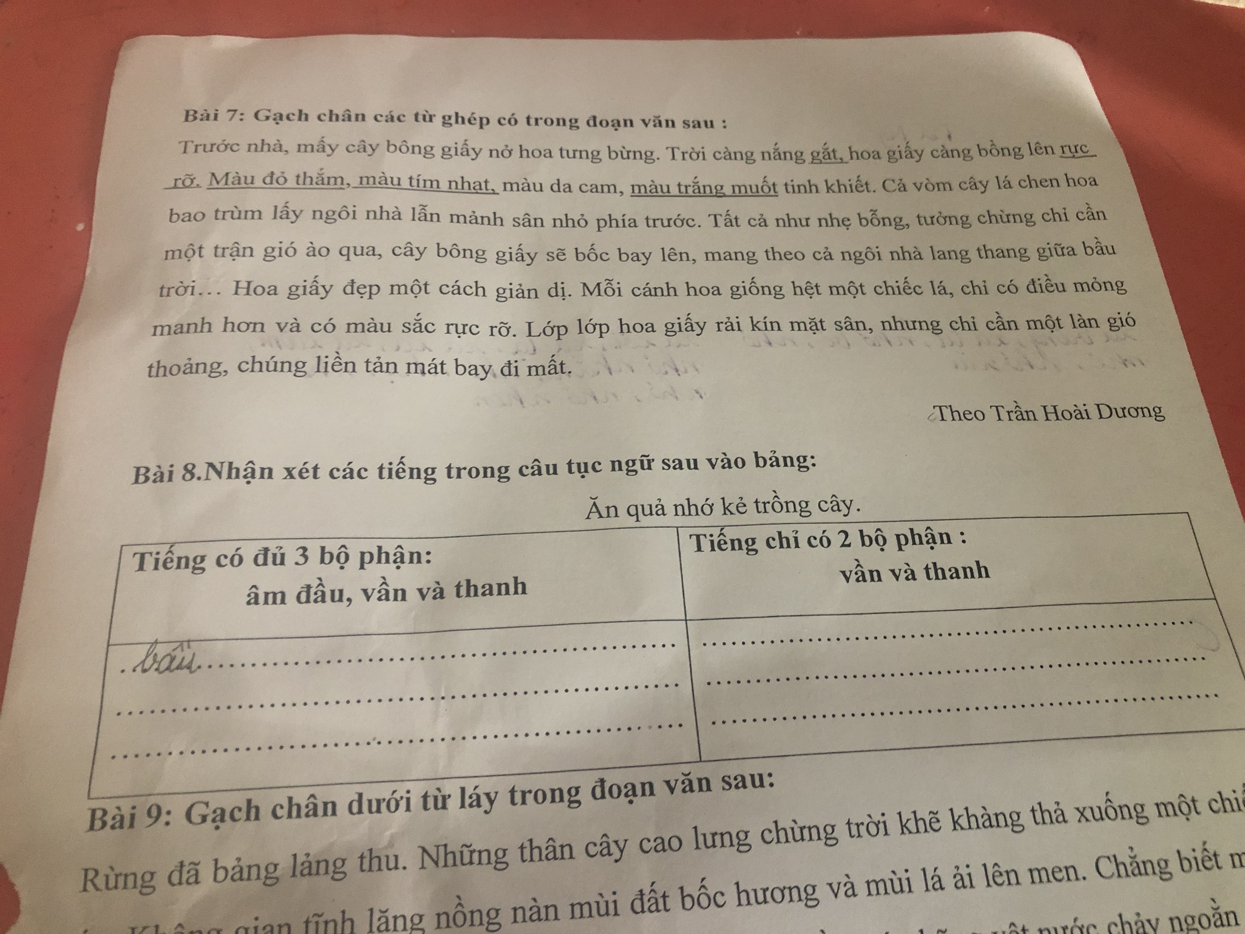 Bài 8: Nhận xét các tiếng trong câu tục ngữ sau vào bảng Ă
