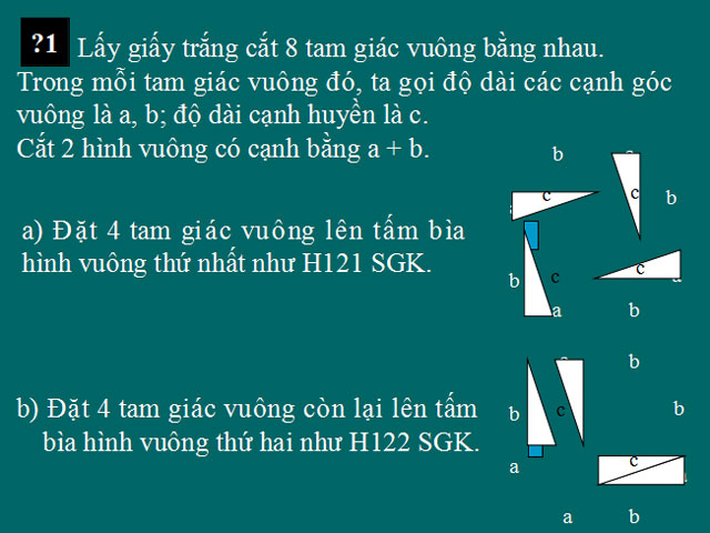 "Định lý Pytago" là bài 7, chương 2 trong chương trình Hình học 7. Bài giảng Định lý Pytago được thiết kế khoa học, chi tiết là tài liệu giảng dạy môn Toán 9 hữu ích, giúp các em nắm được kiến thức về định lý Pytago và biết vận dụng định lý để nhận biết một tam giác là tam giác vuông.