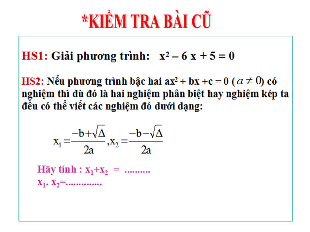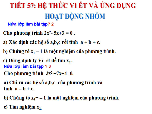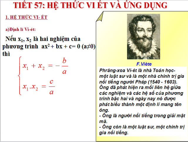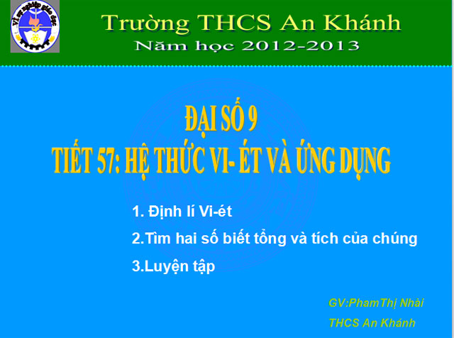 Bài giảng Hệ thức Vi-ét và ứng dụng Đại số 9