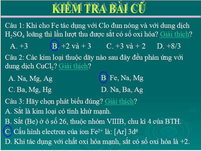 Bài giảng bài 32: Hợp chất của sắt Hóa học 12 nhằm giúp quý thầy cô giáo thiết kế bài giảng trực quan sinh động theo chương trình ứng dụng công nghệ thông tin vào giảng dạy của Bộ Giáo dục và Đào tạo. Đến với bài giảng, quý thầy cô sẽ dễ dàng truyền đạt kiến thức bài Hợp chất của sắt cho học sinh, giúp các em hiểu được tính chất hoá học cơ bản của hợp chất sắt (II) và hợp chất sắt (III), cách điều chế Fe(OH)2 và Fe(OH)3. Ngoài ra, học sinh hiểu nguyên nhân tính khử của hợp chất sắt (II) và tính oxi hoá của hợp chất sắt (III),...Đây còn là tài liệu tham khảo khá hữu ích dành cho quý thầy cô giáo. Tham khảo bài giảng này cũng giúp học sinh xem trước nội dung và ôn lại kiến thức một cách hiệu quả nhất.