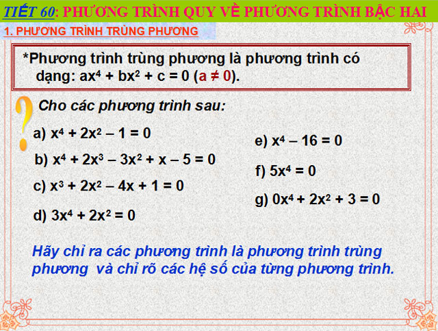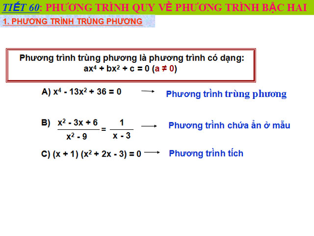 Bài giảng Phương trình quy về phương trình bậc hai Đại số 9