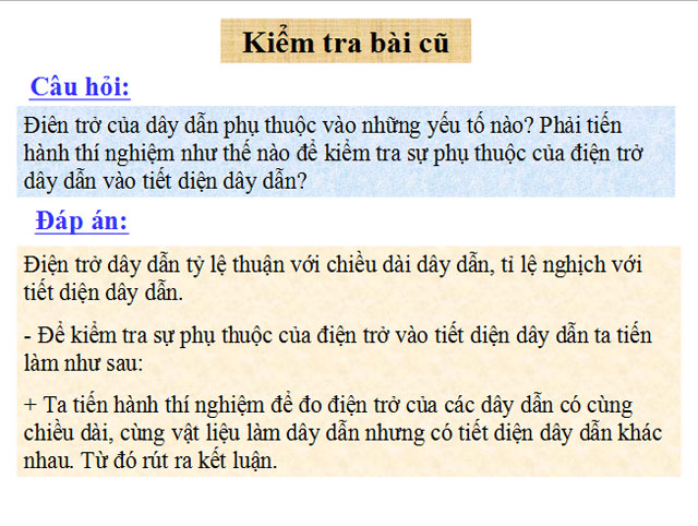 Bài giảng Sự phụ thuộc của điện trở vào vật liệu làm dây dẫn