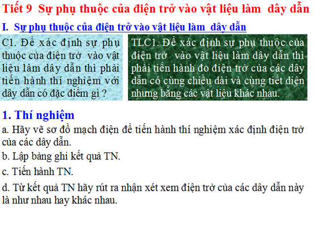 Bài giảng Sự phụ thuộc của điện trở vào vật liệu làm dây dẫn - Vật lí lớp 9