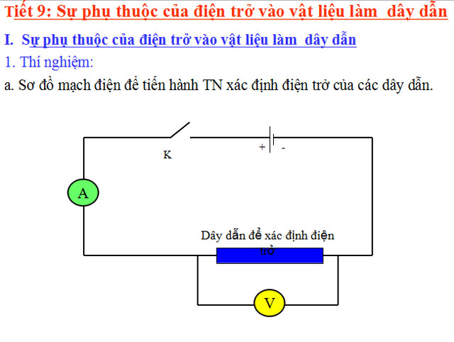 Bài 9: Sự phụ thuộc của điện trở vào vật liệu làm dây dẫn