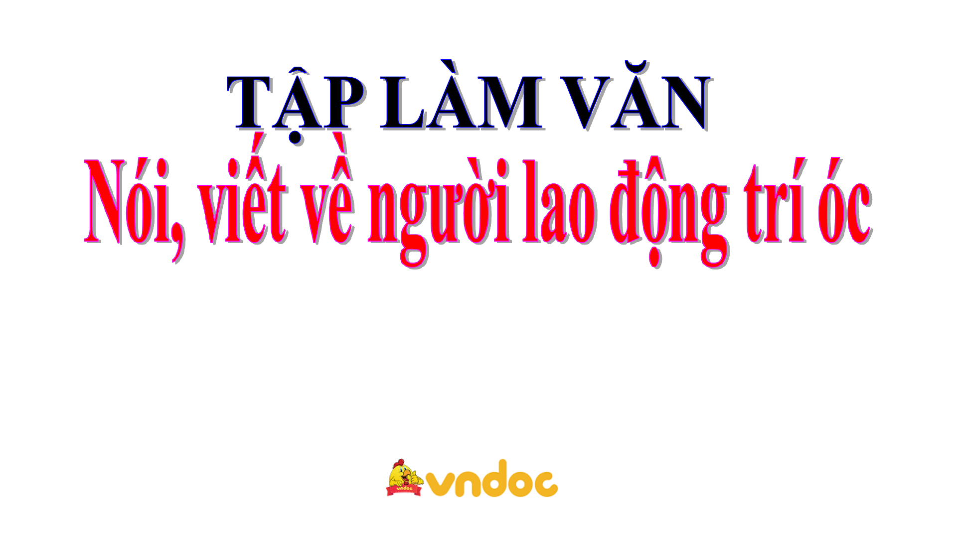 VnDoc.com đã tổng hợp và đăng tải mẫu Bài giảng Tập làm văn 3 Tuần 22: Nói, viết về một người lao động trí óc để quý thầy cô có thể chuẩn bị bài giảng trực tuyến lớp 3 dạy online tại nhà hiệu quả, giúp quý thầy cô tiết kiệm thời gian và công sức soạn giáo án trực tuyến lớp 3 môn Tiếng Việt. Mời quý thầy cô cùng tải tài liệu miễn phí về tham khảo.