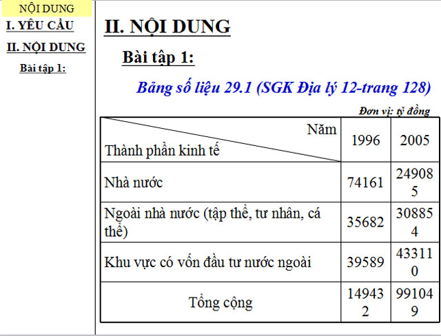 Bài giảng Thực hành vẽ biểu đồ, nhận xét và giải thích sự chuyển dịch cơ cấu công nghiệp