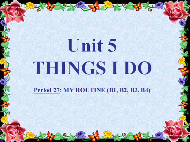 Bài giảng Tiếng Anh 6 unit 5 được trình bày với bố cục rõ ràng trên từng slide PowerPoint, nội dung bài học sát với chương trình bài học "Things I do" sẽ giúp cho quý thầy cô truyền tải những kiến thức trọng tâm của bài cho học sinh, giúp các em hiểu hơn một số từ vựng về môn học, các ngày trong tuần, biết cách nói về sinh hoạt và các thói quen hàng ngày của mình, đặt câu hỏi "WH" với "he/ she". Ngoài ra, được đọc câu chuyện về một bằng hình ảnh và thực hành thì hiện tại đơn. Chúng tôi hi vọng, bộ sưu tập này sẽ là tài liệu hữu dành cho việc dạy và học của thầy cô và các em học sinh. Chúc tiết học của quý thầy cô thành công!