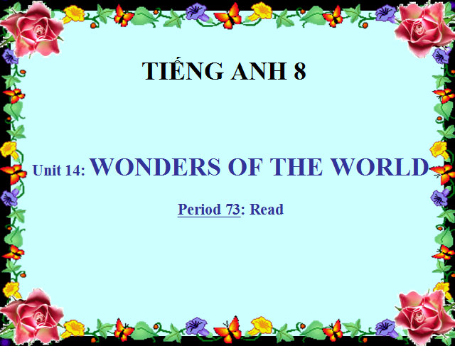 "Wonders of the World" là bài unit 14 trong chương trình Tiếng Anh lớp 8. Bài giảng Tiếng Anh 8 unit 14 bám sát nội dung bài học là tài liệu giảng dạy Tiếng Anh 8 giúp quý thầy cô tham khảo thiết kế bài giảng để tiết học trở nên thú vị, sôi động, thu hút các em học sinh và giúp các em dễ dàng tiếp thu bài học.