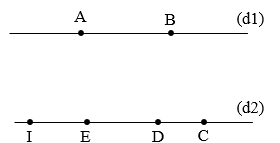 Cho hai đường thẳng d1 và d2 song song với nhau. Trên đường thẳng d1, lấy 2 điểm A và B. Trên đường thẳng d2, lấy 4 điểm I, E, D, C.