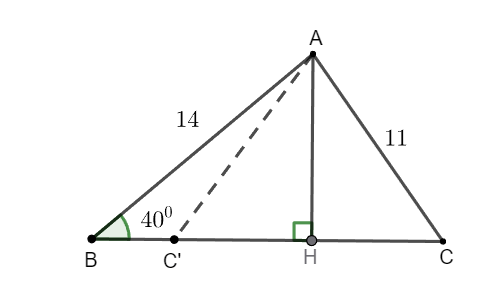 \(AH\ = \ AB.\sin\ B\ = \ 14.\sin\ 40^{o}