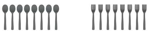 có 8 cái thìa và 8 cái dĩa.