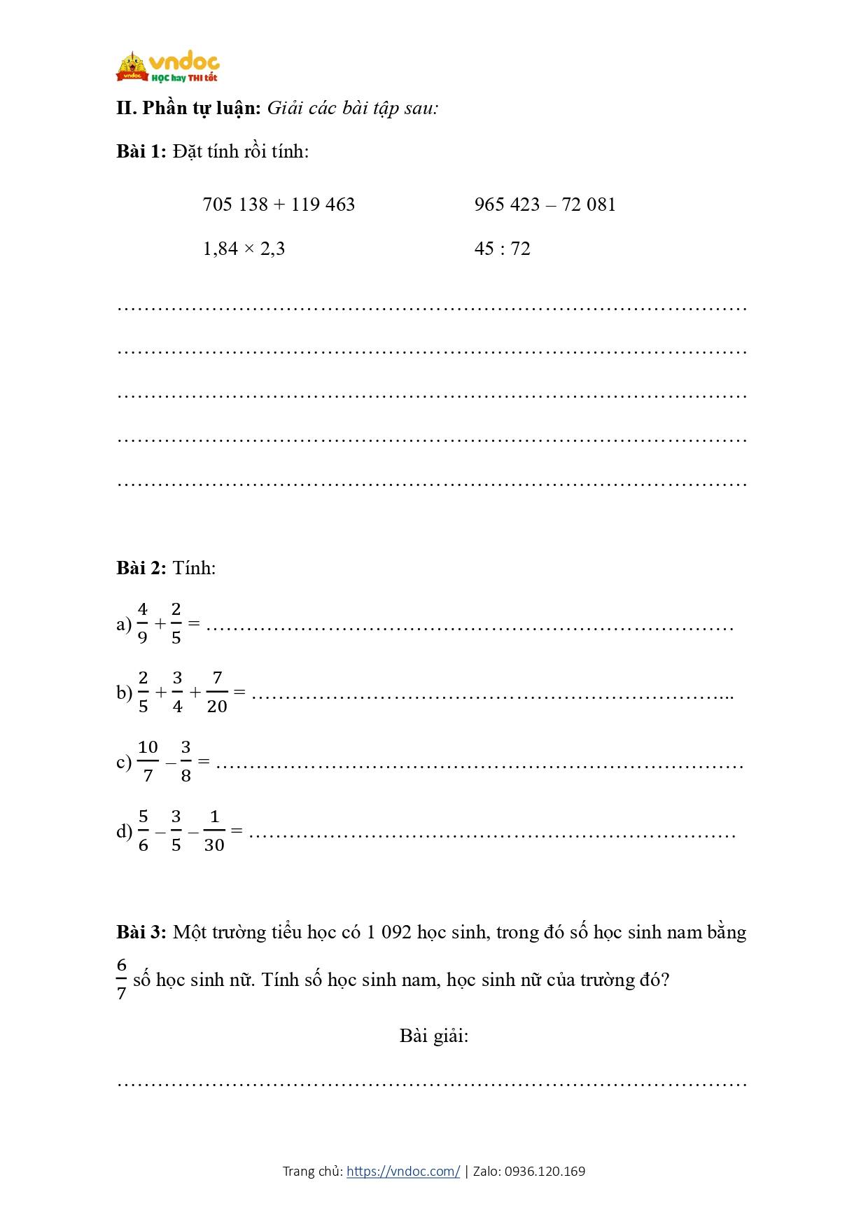 - Tham khảo: BTCT Toán lớp 5 Kết nối tri thức