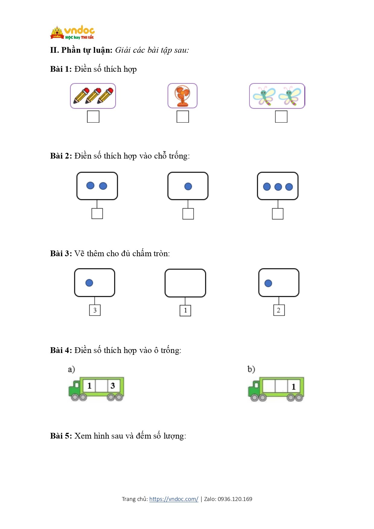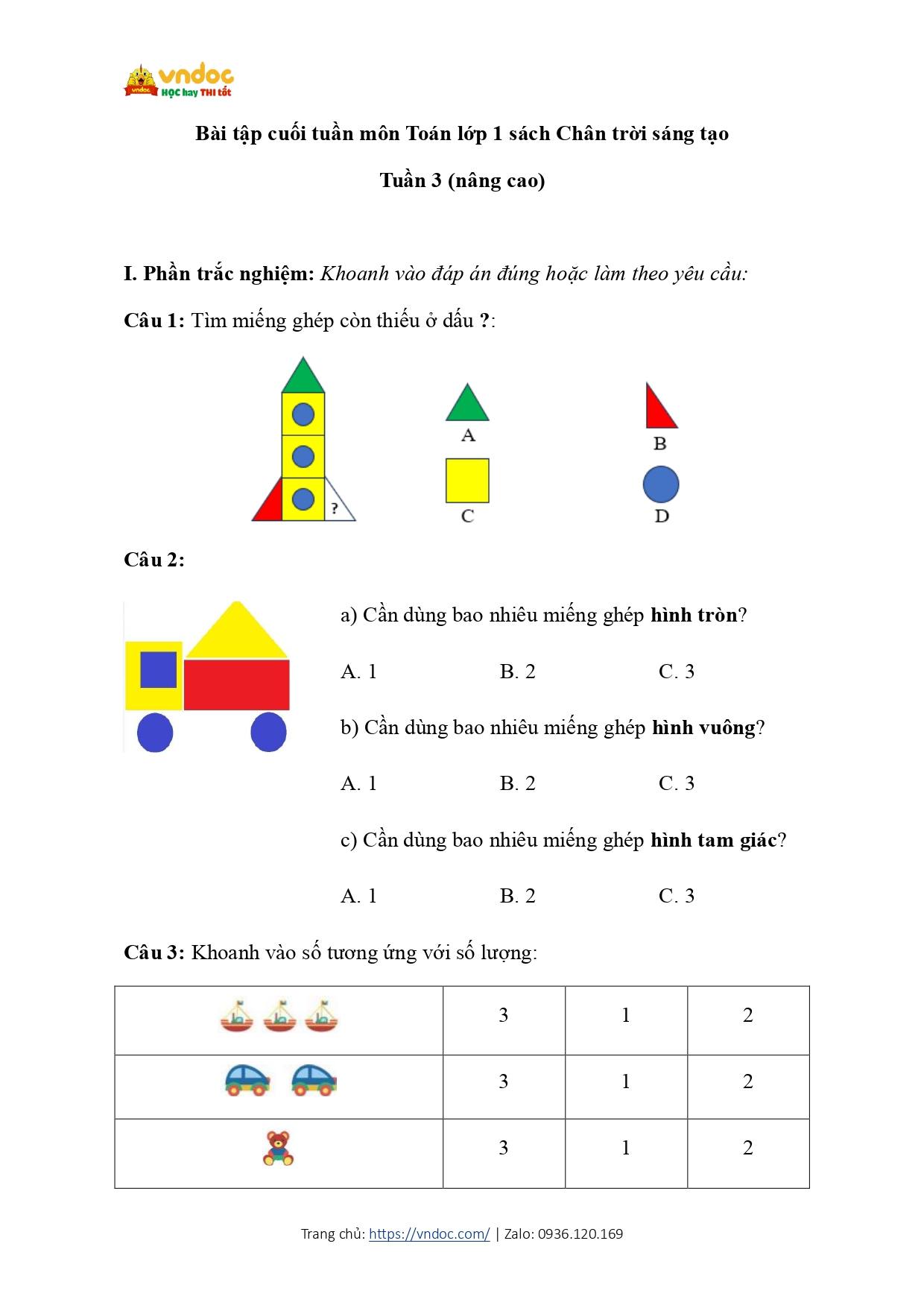 Bài tập cuối tuần Toán lớp 1 Chân trời sáng tạo Tuần 3 nâng cao