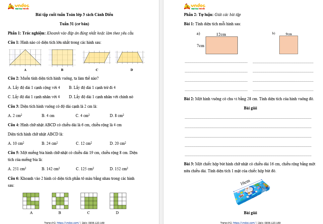 >> Xem thêm: Bài tập cuối tuần Toán lớp 3 Cánh Diều - Tuần 31 (nâng cao)