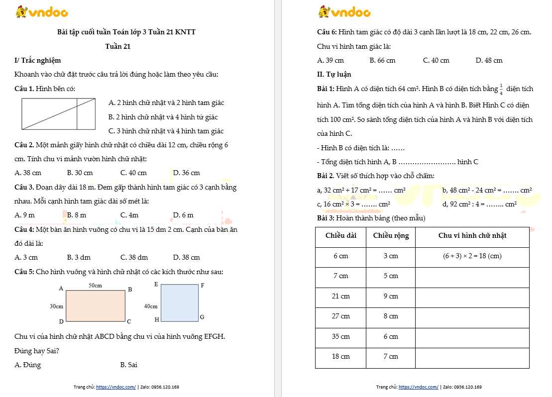 - Xem thêm: Bài tập cuối tuần Toán lớp 3 Kết nối - Tuần 21 (nâng cao)