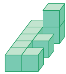 Tính thể tích của hình bên dưới biết nó được ghép bởi các hình lập phương như nhau cạnh 0,5 dm.