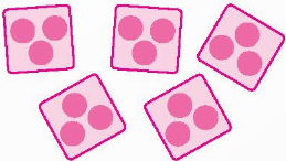 15 chấm tròn chia vào 5 thẻ, mỗi thẻ có mấy chấm tròn?