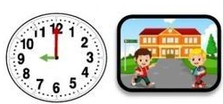 Chọn từ thích hợp điền vào chỗ trống để được thời gian đúng tương ứng với thời gian trên đồng hồ: