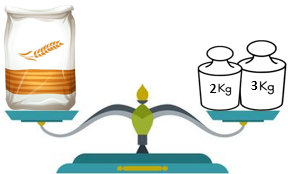 Bao gạo cân nặng bằng 2 quả cân 2g và 3 kg