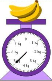 Bác Năm hái được 2 quả bưởi và cân số cân nặng của 2 quả bưởi (như hình minh họa). Cân nặng của 1 quả bưởi là: