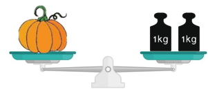 Cân nặng của quả bí ngô là: 1kg + 1kg = 2kg