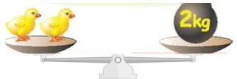 2 con gà con có cân nặng như nhau. Cân nặng của 1 con gà là: