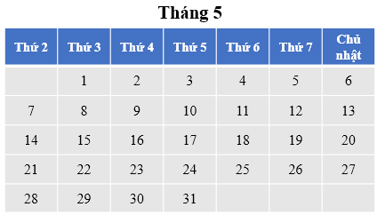 Xem tờ lịch sau và cho biết: Ngày đầu tiên của tháng 5 là thứ mấy?