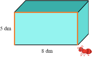 Một con kiến bò theo viền một chiếc hộp hình hộp chữ nhật (đường màu đỏ như hình vẽ). Độ dài đoạn đường kiến đã bò được là: