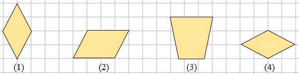 Trong hình sau có những hình nào là hình thoi? Chọn các đáp án đúng: