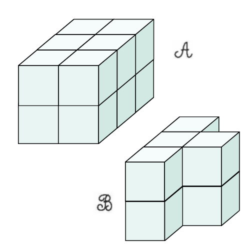 Nam tháo rời một hình P gồm 8 hình lập phương nhỏ thành hai hình M và N.