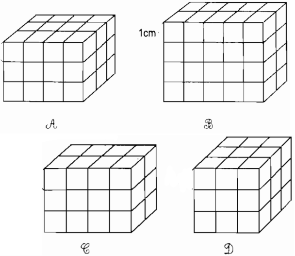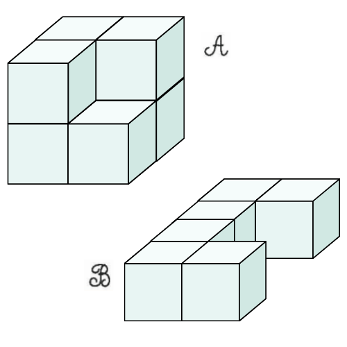 Hình hộp chữ nhật A gồm 8 hình lập phương nhỏ.